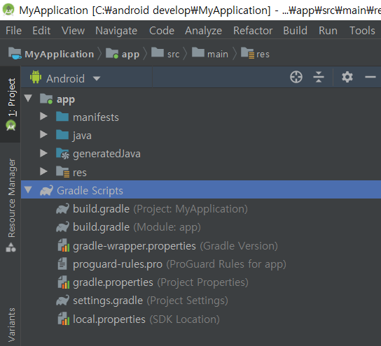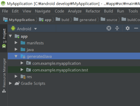 generatedJava같은 경우에는 어플리케이션화면을 만들고 클래스를 만들면 알아서 자동으로 생성을 하는 부분인데 이곳은 보통 건들지 않는다.