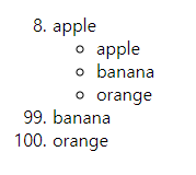 | type | 항목에 매겨지는 번호의 유형 | a, A, i, I, 1 |