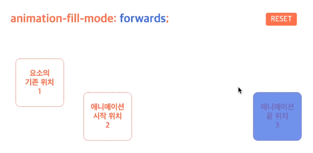 | forwards | 기존 위치에서 시작-> 애니메이션 시작 위치로 이동-> 동작-> 애니메이션 끝 위치에서 끝 | |