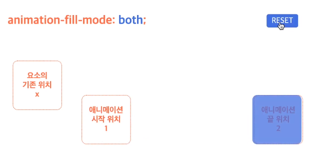 | both | 애니메이션 시작 위치에서 시작-> 동작-> 애니메이션 끝 위치에서 끝 |