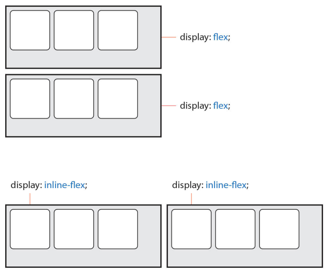 그림에서 보면 알 수 있듯이, Items의 정렬방식은 똑같다. 하지만 Container는 블록요소 혹은 인라인요소로 정렬방식이 다르다.