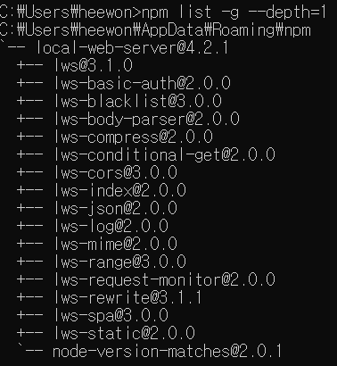 npm list -g는 전역적으로 설치된 npm 패키지 목록을 말합니다. 매우 복잡하게 나올겁니다.