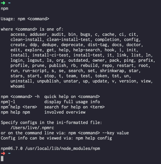 이것은 본인이 설치한 npm 리스트의 이름만 보여줍니다.