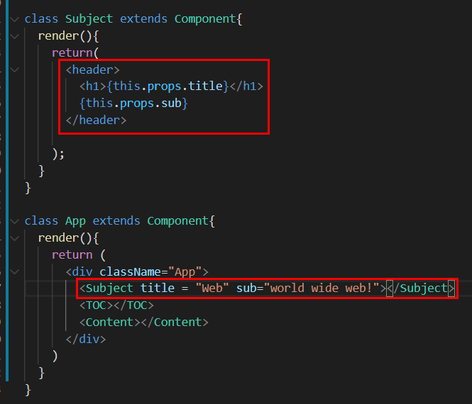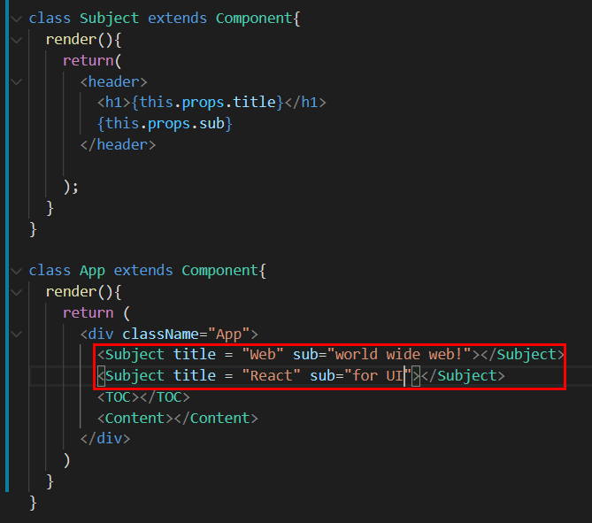 이것으로 리팩토링작업은 끝났습니다. 이제 title과 sub값을 변경해볼까요?