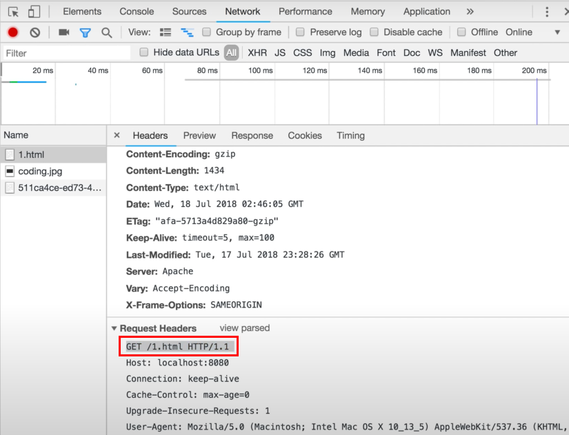 이것의 뜻은, 1.html을 요청했다는 뜻이고, 웹브라우저가 지금 사용할 수 있는 HTTP의 버전이 1.1이라는 뜻입니다.