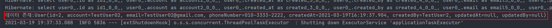 deleteUser는 2L을 찾아서 데이터가 삭제되었는지 확인해주는 소스코드 입니다.