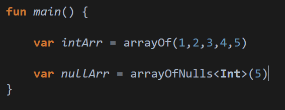 arrayOf함수를 통해 배열에 저장할 값들을 나열하면 됩니다.