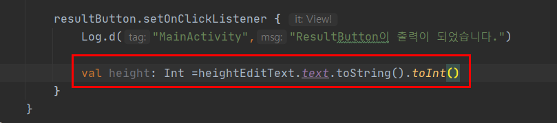 그래서 toString()으로 스트링값으로 변환해주고, toInt()로 정수값으로 변환을 해주어야 오류없이 정수값으로 받아 올 수 있게 됩니다.