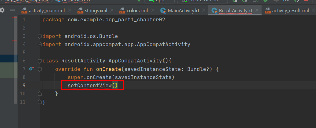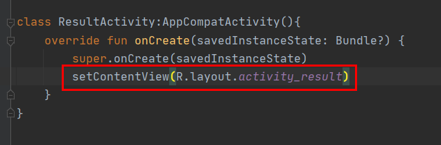 새로운 엑티비티를 만든후에 다음과 같이 선언하면 할당이 되어서 activity_result라는 새로운 레이아웃을 설정 할 수 있게 되었습니다.
