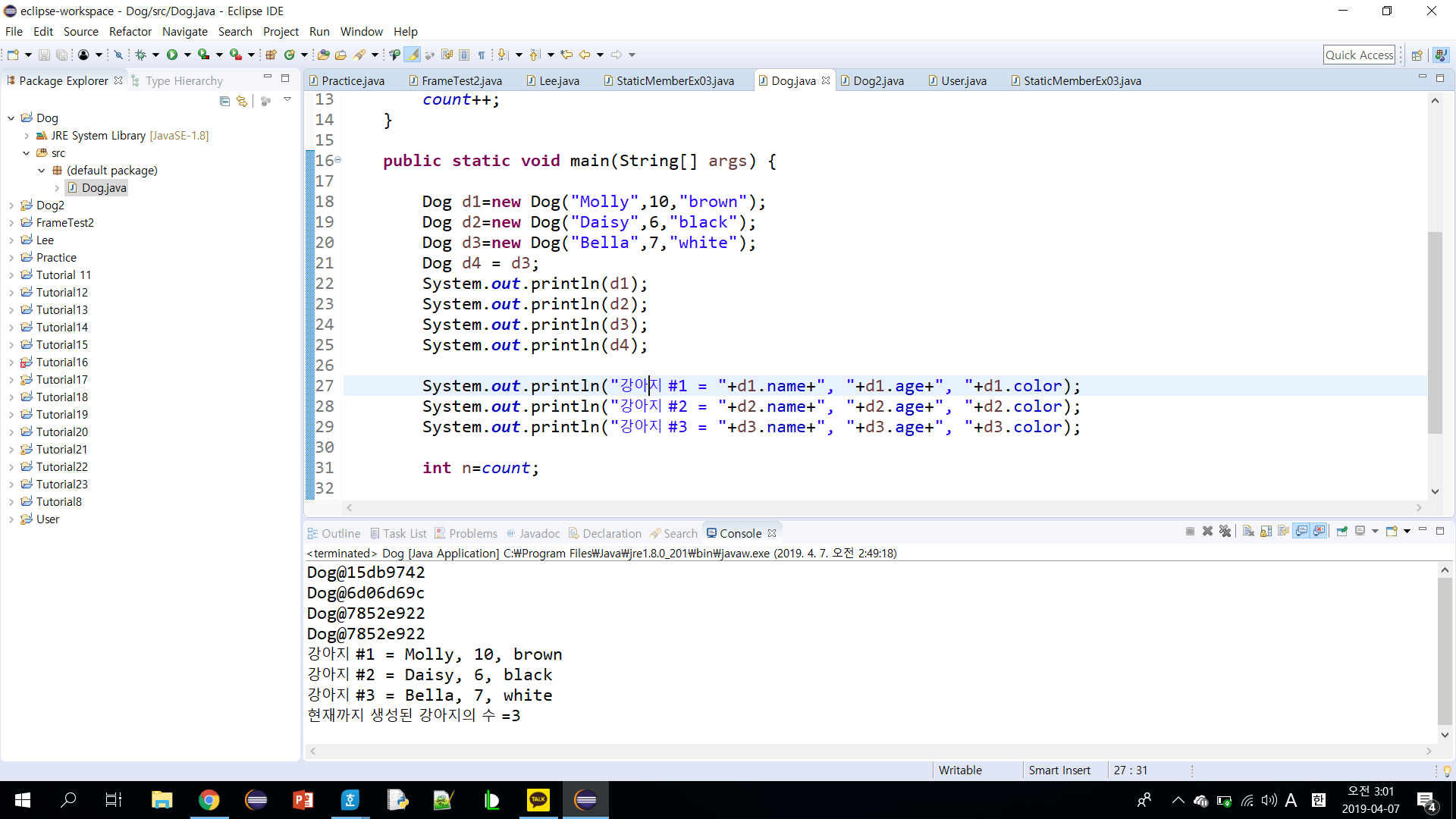 자동적인 형변환 컴퓨터에서는 산술적인 연산을 하기 전에 피연산자의 타입을 통일하여야 한다. 컴퓨터에서 정수 계산하드웨어와 실수 하드웨어는 완전히 다르다. 수식을 계산할 때는 가장 범위가 넓은 피연산자의 타입으로 변환된다. ex) double sum = 1.5 + 12; // 1.5 + 12.0으로 변환된다. 강제적인 형변환 강제적인 형변환을 하려면 형변환 연산자를 사용한다. 변환하려는 값의 앞에 원하는 자료형을 적어주면 된다. ex) int x = 3; double y = (double) x; 또한 더 작은 크기의 자료형에 값을 저장하는 형변환은 정보를 잃을 수 있다. 이러한 변환을 축호 변환이라고 한다. ex) i = (int) 12.5; // i에는 12만 저장