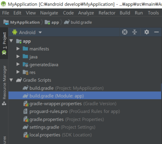 applicationId "com.example.myapplication" //패키지이름이랑 이름이 조합되어있는것.