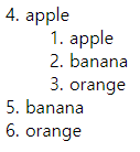 | start | 항목에 매겨지는 번호의 시작 값 | 숫자(number) |