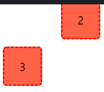 3번째 박스가 보이지 않는 현상이 생긴다. 이것은 2번박스가 부모요소가 되면서 3번박스는 2번박스(부모요소)밑으로 들어가졌기 때문에, 3번박스는 2번박스 뒤에 있게 된다.