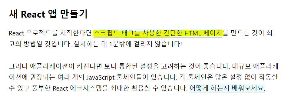 우선 react 홈페이지에서 "시작하기" 버튼을 클릭해줍니다.