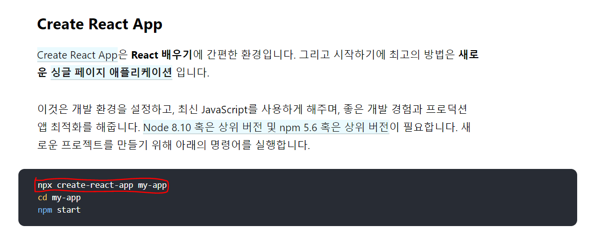 npx라는 것은 create-react-app이라는것을 임시로 설치해서 딱한번만 실행하고 지워버리라는 뜻을 가집니다.