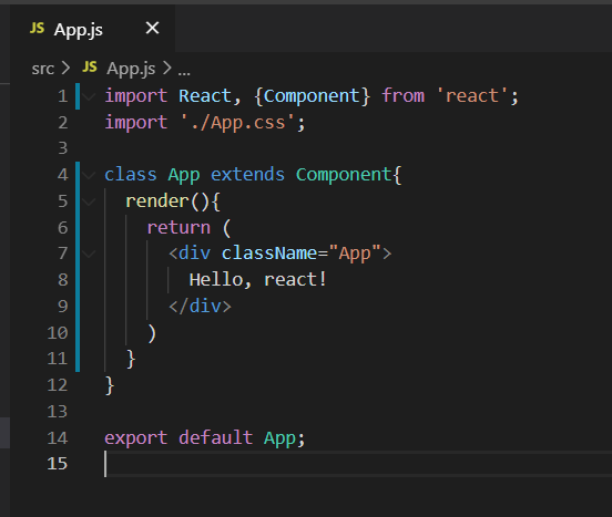 App.js 파일을 열어보면 함수타입으로 되어있을겁니다. 그것을 class타입으로 바꿔주세요.