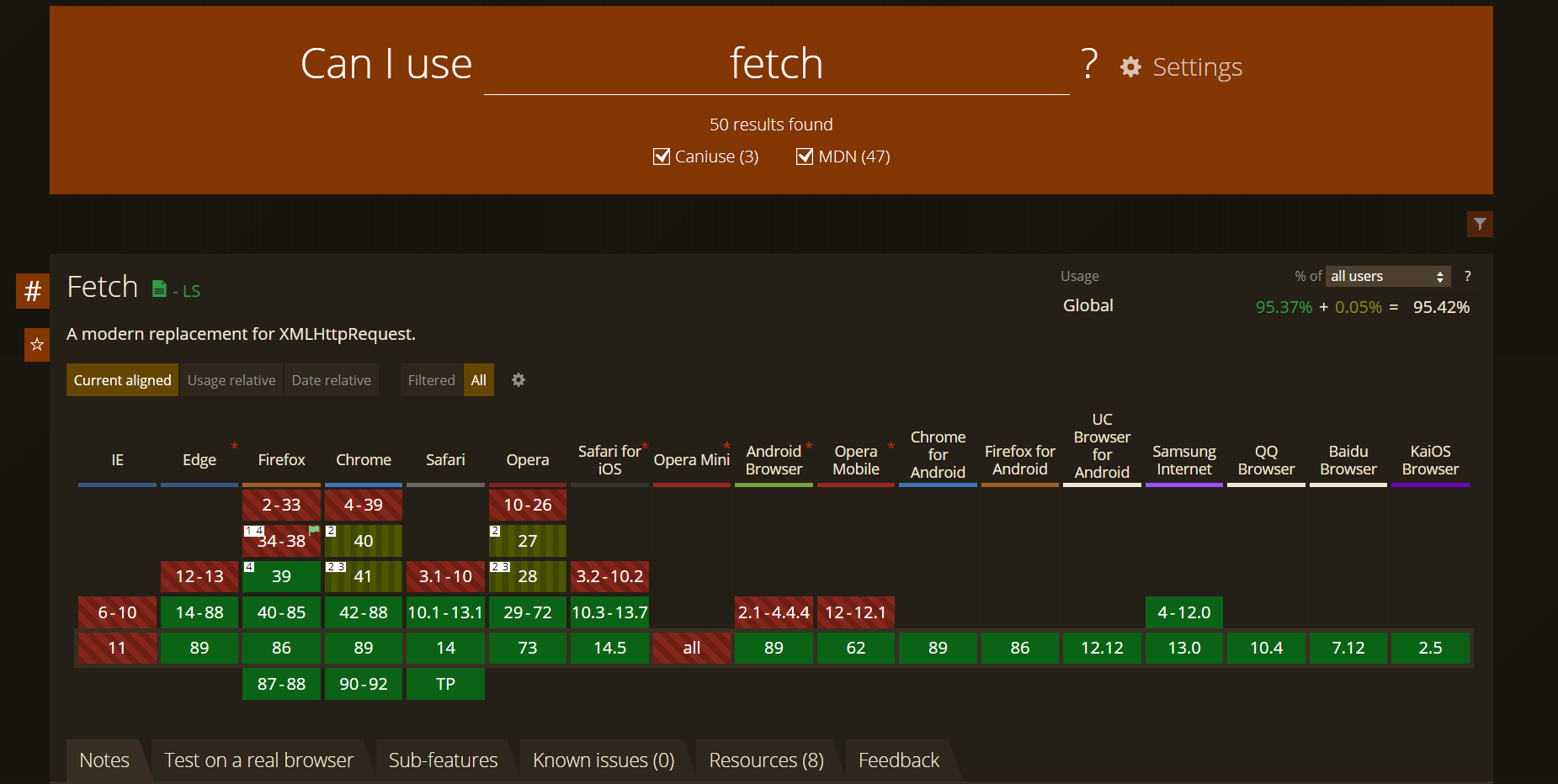 빨간색은 지원하지 않는다는 뜻이고, 95.42%는 얼마나 많이 지원이 되는지 보여주는 것입니다.