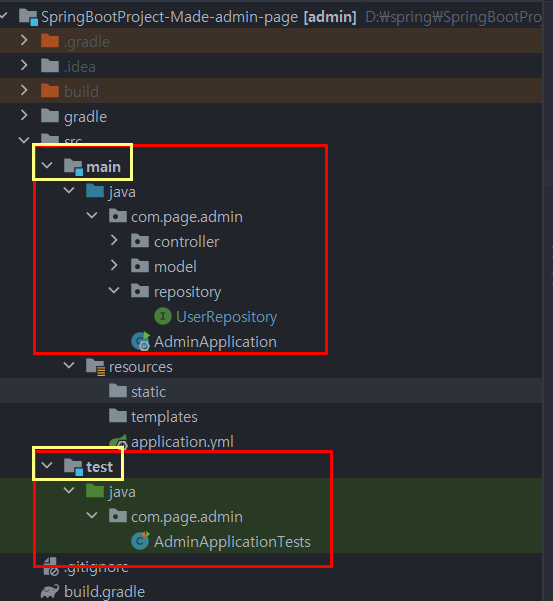 다음 패키지를 보면 2가지의 패키지가 있습니다. 하나는 main 다른하나는 test입니다.